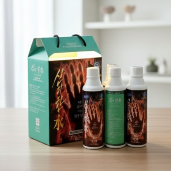 pH 12.7 이상의 초고알칼리성 제품입니다. 1000ml 물에 신의한수 50ml 희석하여 하루 총 2000ml 물을 섭취하세요.